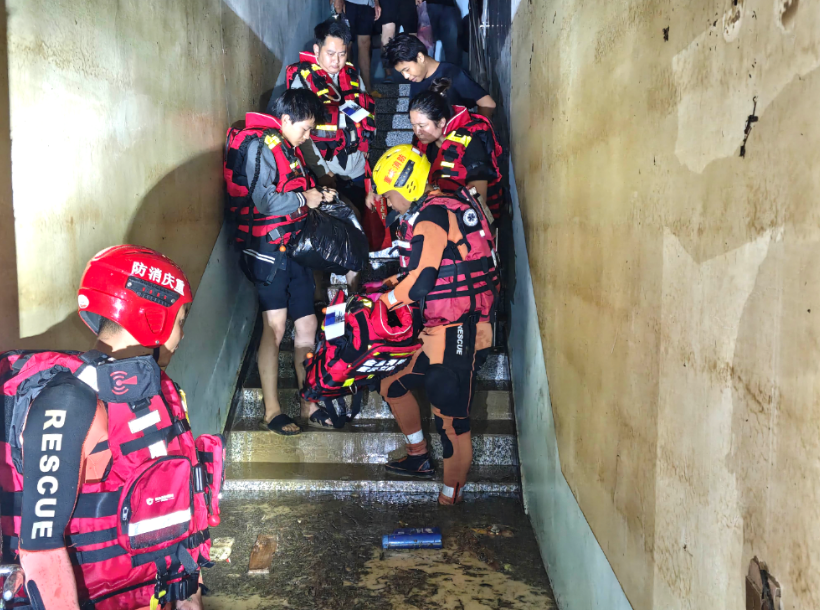 消防救援人员正在营救被困群众。黔江区消防救援支队供图